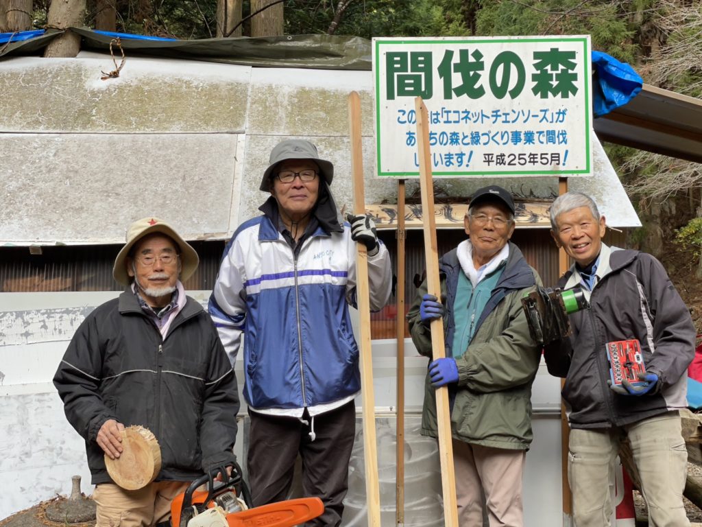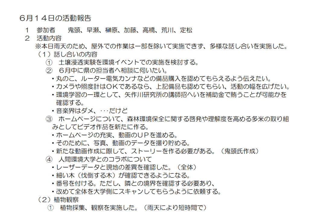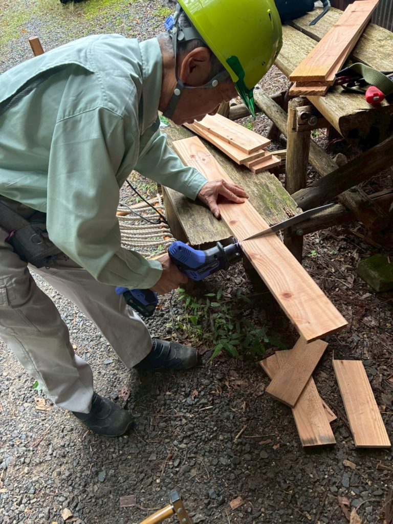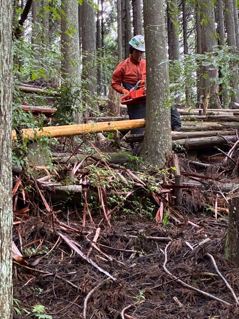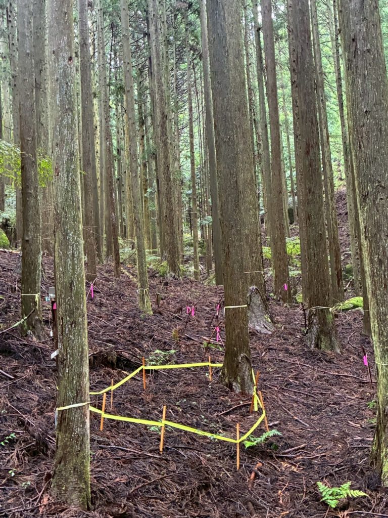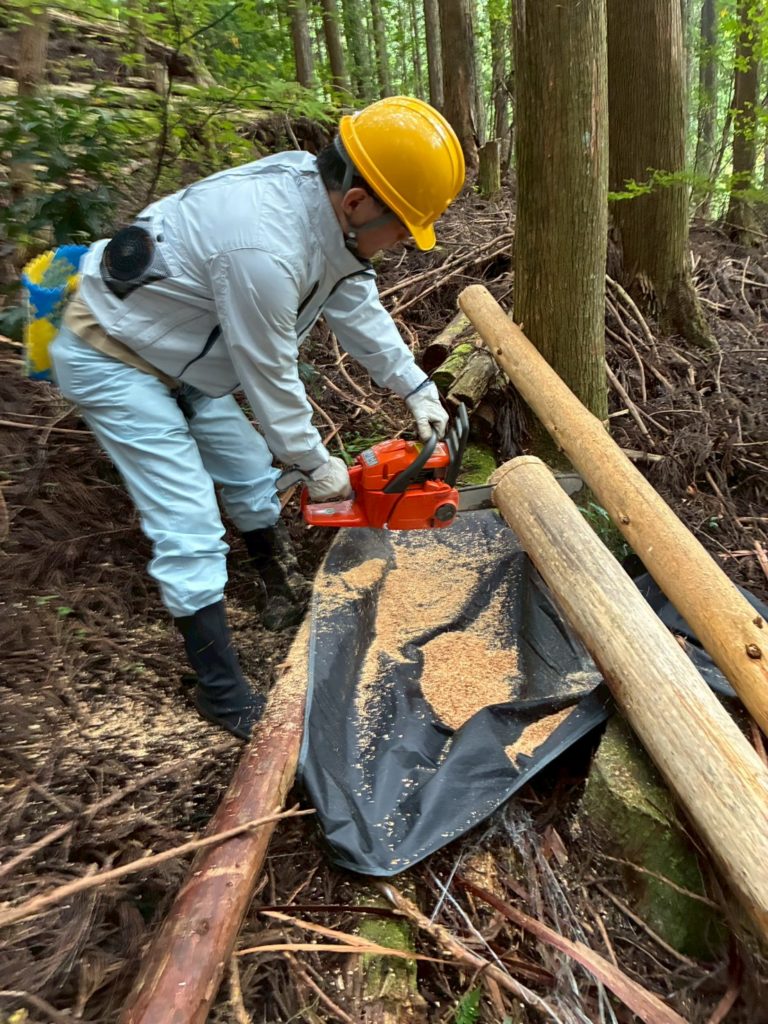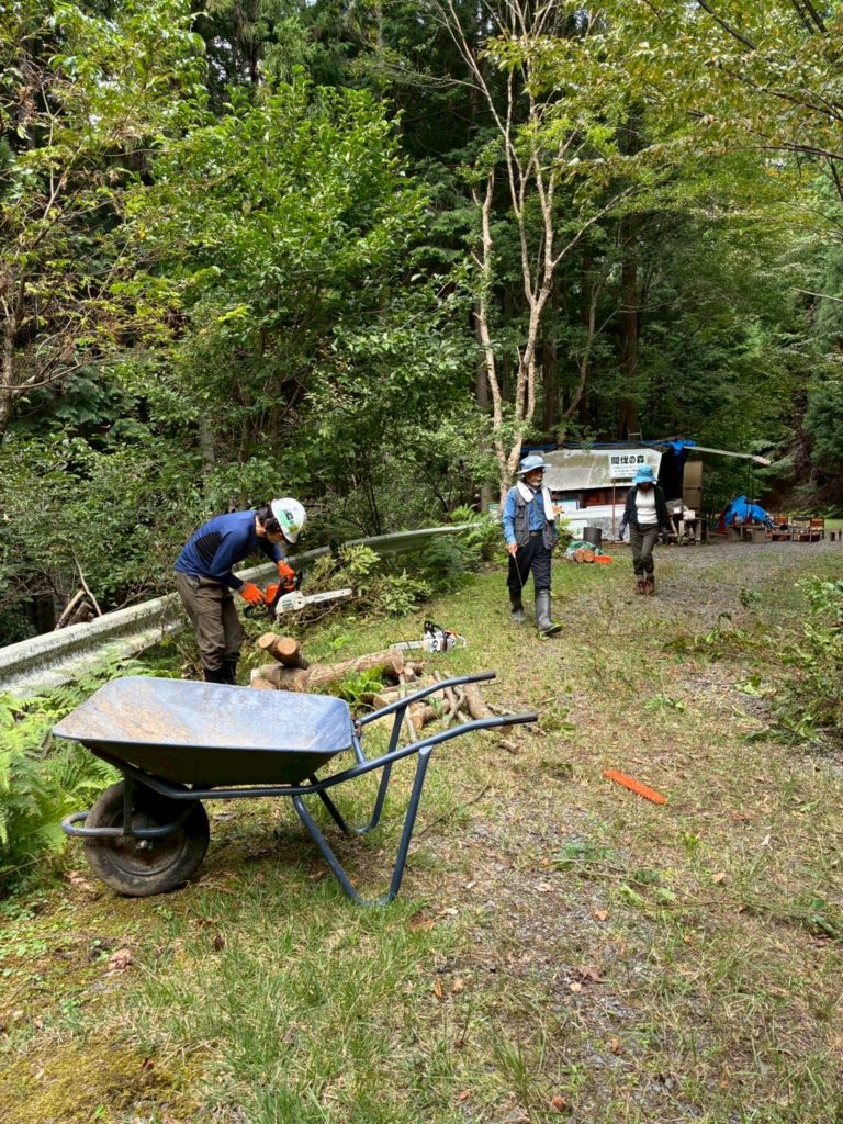 9月13日(土)の活動は、①11月の環境イベントについての打ち合わせ、②間伐率の調査エリアの整備、③伐倒とチェンソーの使い方訓練、④植物の生育状況の観察、⑤トレイルカメラのデータ収集などでした。