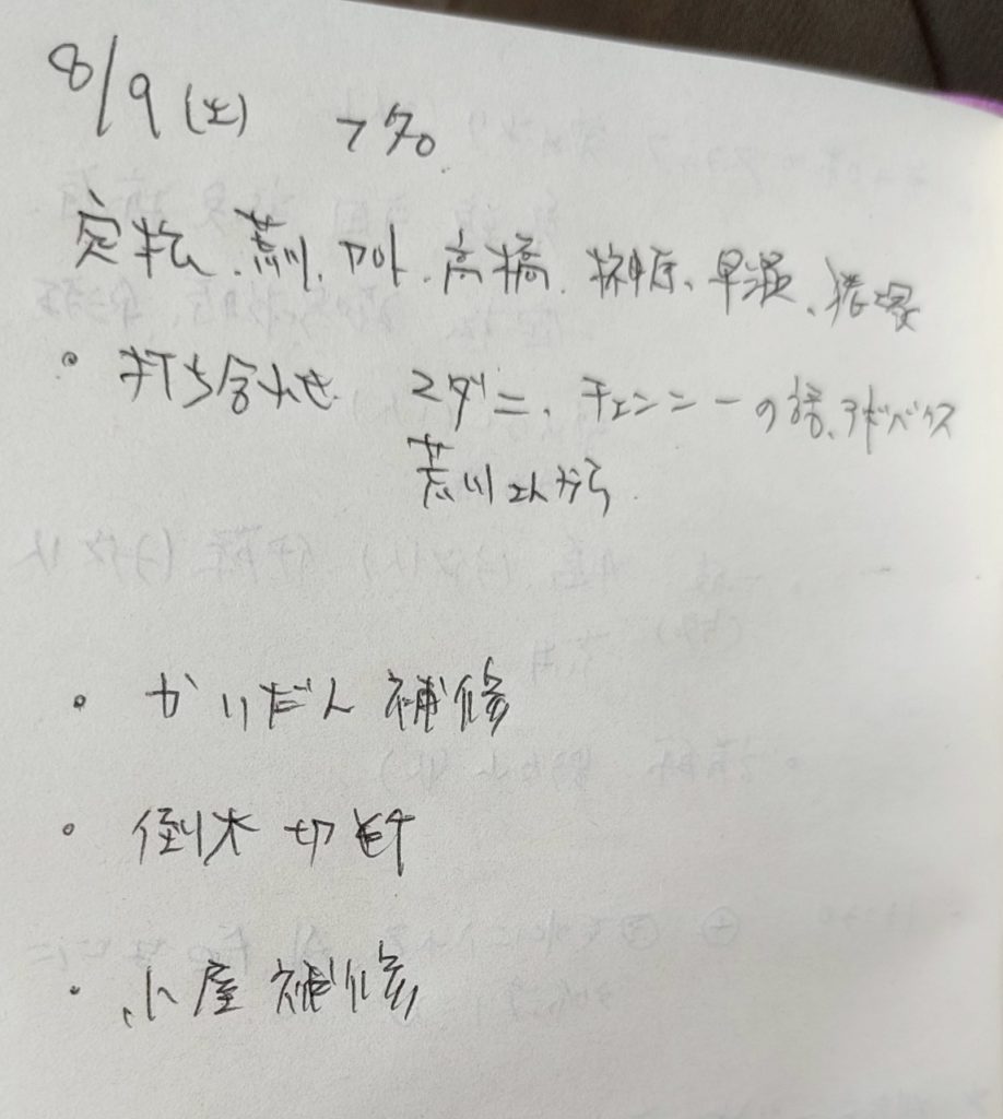 8月24日(日)は、暑いとはいえ十分に活動できる状況でした。参加者は、鬼頭、久保田、猪塚、寺岡、榊原の5人でした。(転倒によるけがあり、要注意)