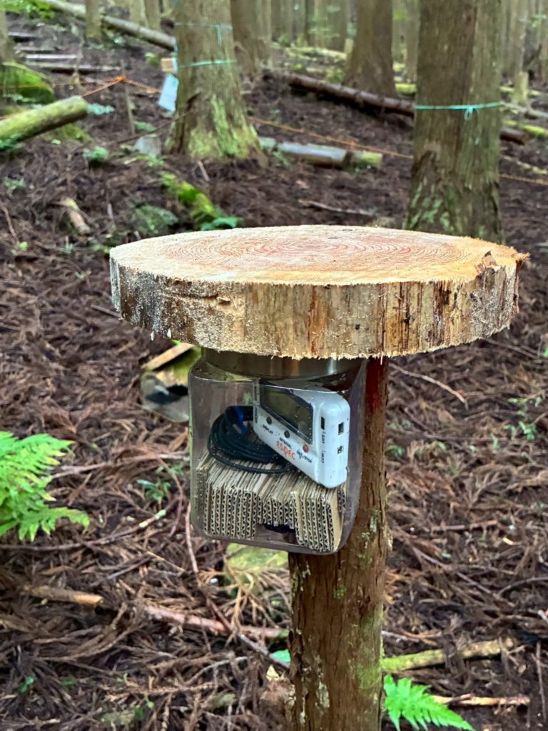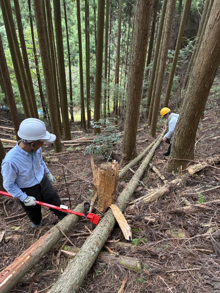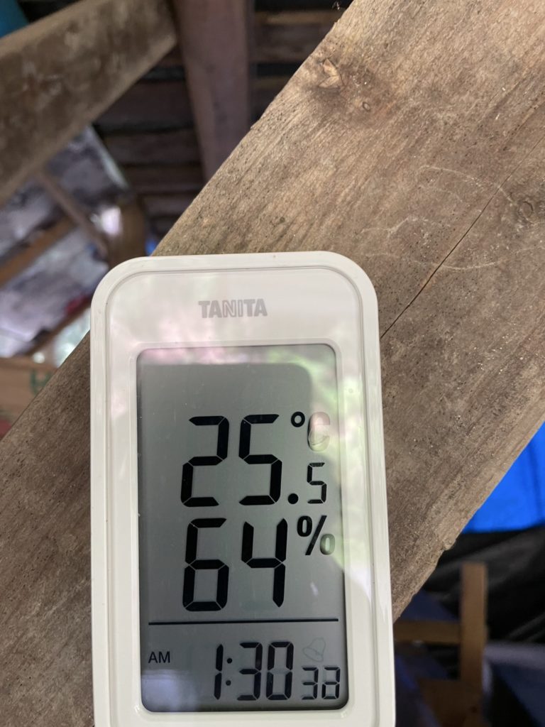 平地は、気温35度越えが当然のように続いていますが、今日の間伐の森は、なんと摂氏25度でした。